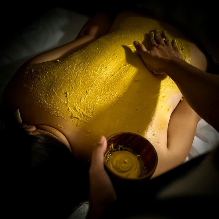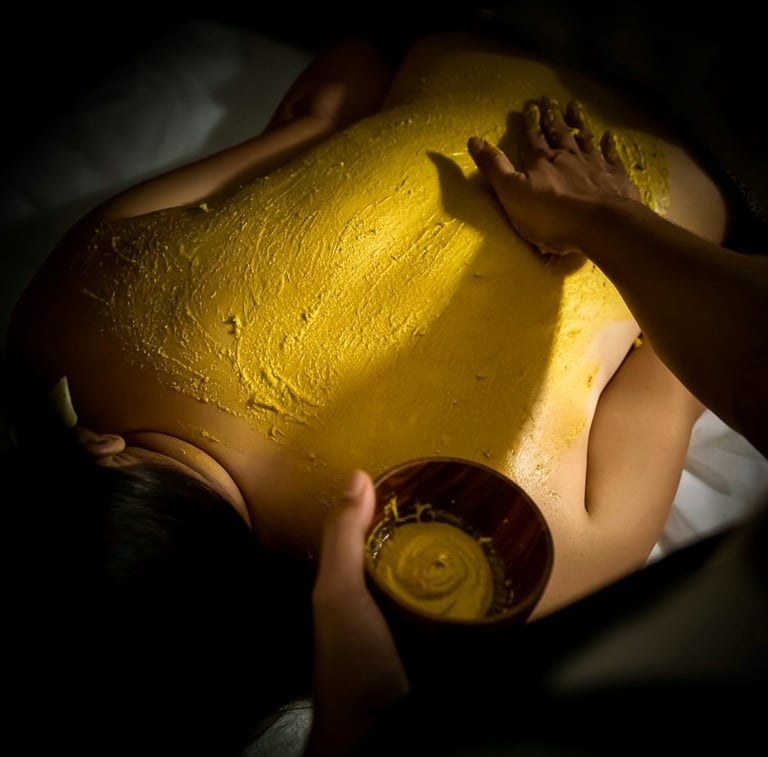 Disfruta de una piel sedosa y con brillo natural, con nuestra exotica selección de Scrubs y Envolturas 100 % naturales de diferentes rincones de Asia. Recetas milenarias Ćŗnicas, elaboradas a base de flores aromĆ”ticas, cocos, raĆces, y aceites botĆ”nicos, aplicadas a diferentes temperaturas sobre una piedra caliente, y retiradas con cuencos de agua.