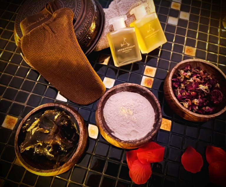 Tu experiencia empieza con una calmante acupresión Indonesia sobre futón para preparar cuerpo y mente al tratamiento. Sobre una piedra caliente, envolvemos el cuerpo con el Jabón Negro, una pasta a base de olivas negras y aceites puros de Menta y Eucalipto, masajeada intensamente con el guante de Kessa. Después de retirarla con cuencos de agua caliente, aplicamos mediante un suave masaje una mezcla tibia de Rassoul, Rosas y manteca de Karité acompañada de un Shiatsu Craneofacial.